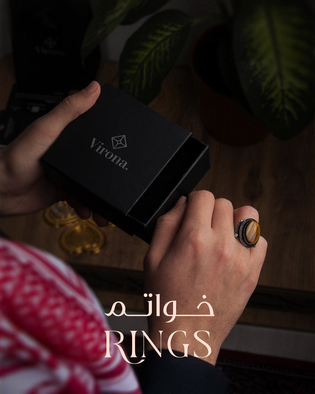 Men's Silver Ring with Tiger Eye Stone in a Luxurious Royal Frame